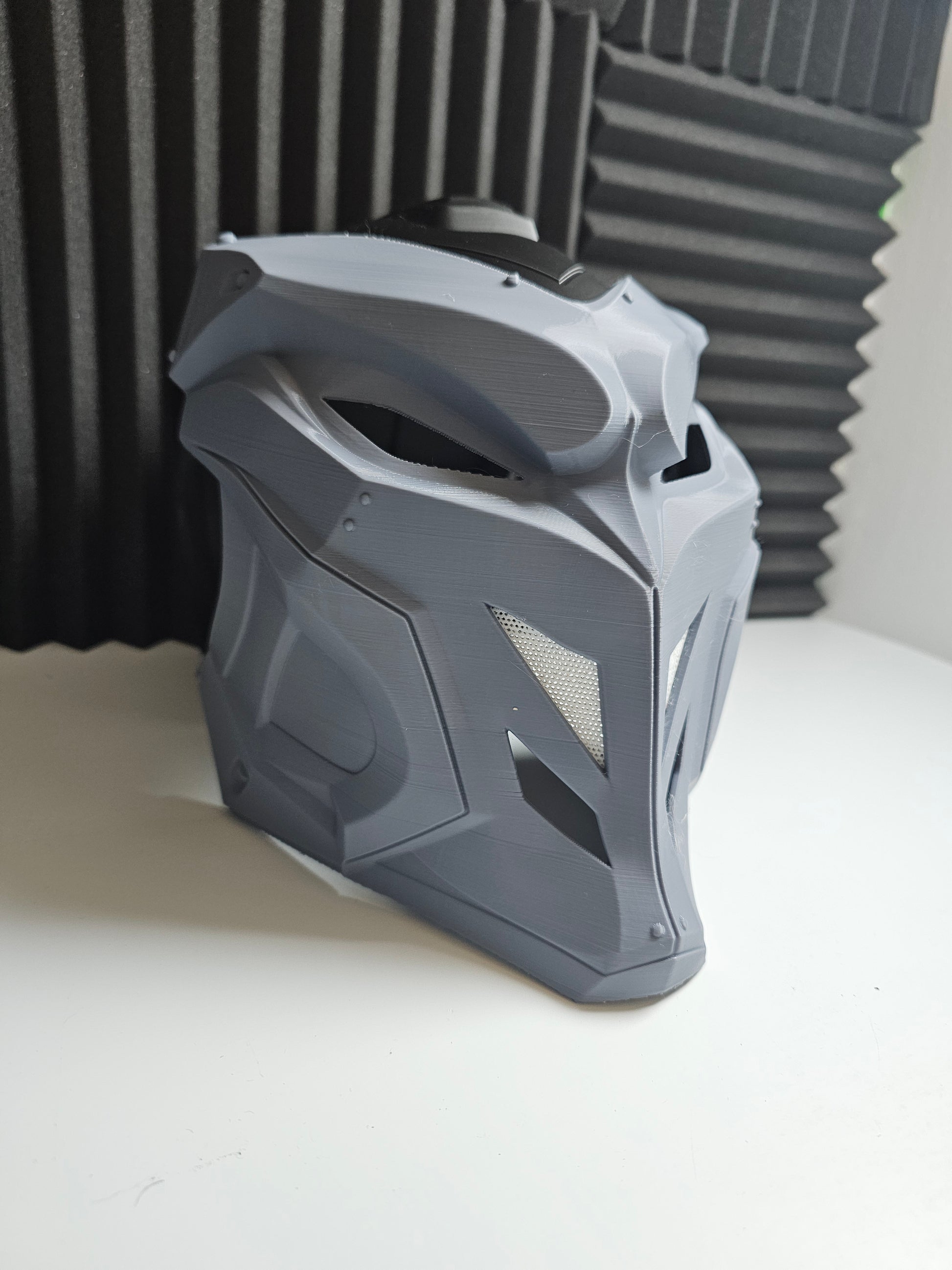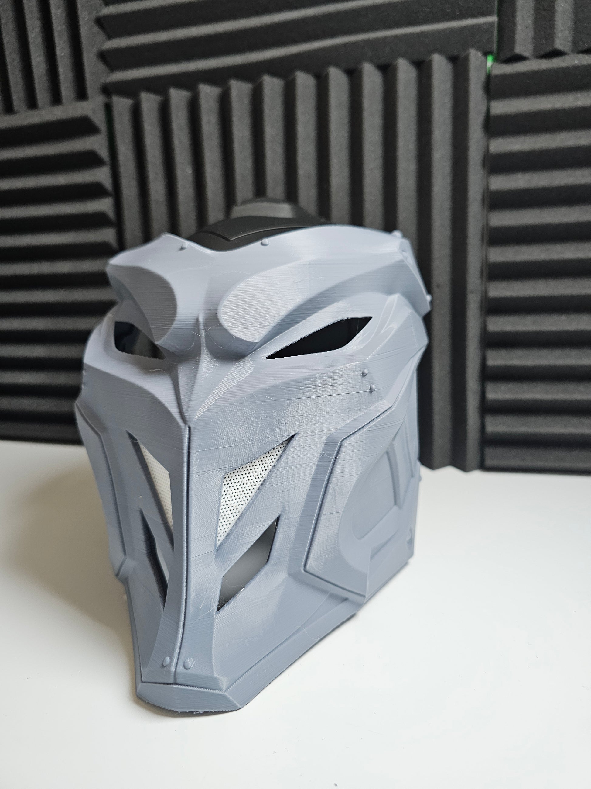 This cosplay helmet is designed for maximum screen accuracy and crafted with high-precision 3D printing. Each piece is made to your custom size requirements and prepared for finishing by hand.